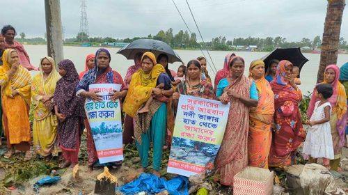 মুন্সীগঞ্জে পদ্মার তীরে ভাঙন কবলিতদের মানববন্ধন